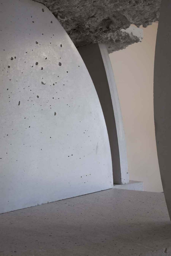 Les murs de Batara sont créés de la même façon, dans un processus qui enlève la matière, en creusant dans l’environnement naturel. Du béton ou du plâtre est versé directement dans des fosses de terre ou de sable, donnant une texture lisse d’un côté et rugueue et irrégulière de l’autre./p>