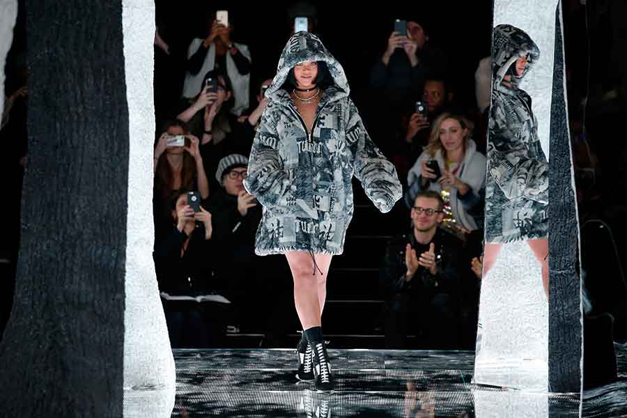 Pour sa première collection dans le cadre de sa collaboration avec Puma, Rihanna est allée chercher son inspiration dans la street culture et la tradition japonaise. En mêlant cette influence culturelle avec l’univers gothique, et à des volumes et des coupes éxagérées, l’icône de la mode alterne les silhouettes masculines et féminines traditionnelles, estompe les lignes entre les genres qu’elle juge bien trop rigides pour ses conceptions esthétiques. Rihanna introduit différents styles comme la Robe Kimono extra longue, les survêtements en tricot, les corsets en jersey perforés et lacés, les jupes et combinaisons. Pour sa première collection, elle joue sur les formes pour créer des tops et des vestes à manches longues surdimensionnées et des sweats à capuche et col ras-du-cou volumineux. Plusieurs silhouettes se couvrent de lacets, courant tout le long du vêtement pour donner plus de mordant. Toute une gamme outdoor, comme le bomber en velours, satisferont à la fois les fans de mode et les adeptes du fonctionnel. Chaque pièce incarne à la fois un côté sexy prononcé ainsi qu’un côté brut.