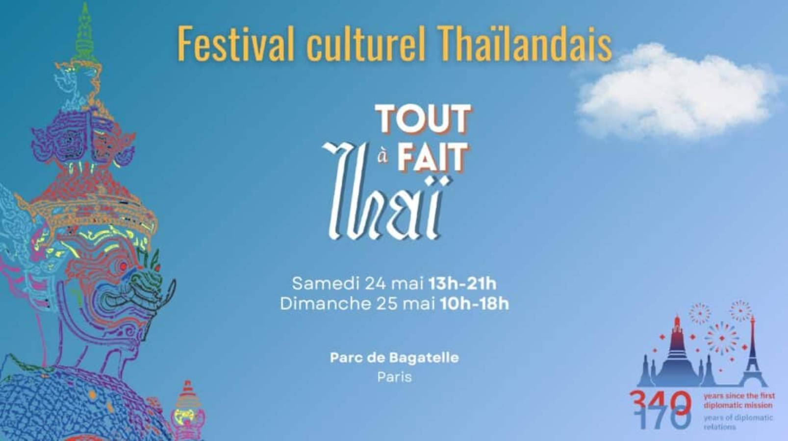 Le Festival Tout à Fait Thaï célèbre le 340ᵉ anniversaire des premières relations entre le Royaume de Siam et la France, ainsi que le 170ᵉ anniversaire des relations diplomatiques entre les deux pays. Durant deux jours, les 24 et 25 mai 2025, le Festival s’installe au sein du Parc de Bagatelle. Organisé par l’Ambassade Royale de Thaïlande, il vous propose une programmation particulièrement riche avec plus de 25 stands de gastronomie thaï, de spectacles traditionnels, de concerts live, d’ateliers d’artisanat, de massages thaïlandais, de Muay Thaï, d’une exposition de costumes et des rencontres avec des célébrités thaïlandaises. La cérémonie d’ouverture officielle se tiendra en présence de Son Excellence Monsieur Sarun Charoensuwan, Ambassadeur de Thaïlande en France.