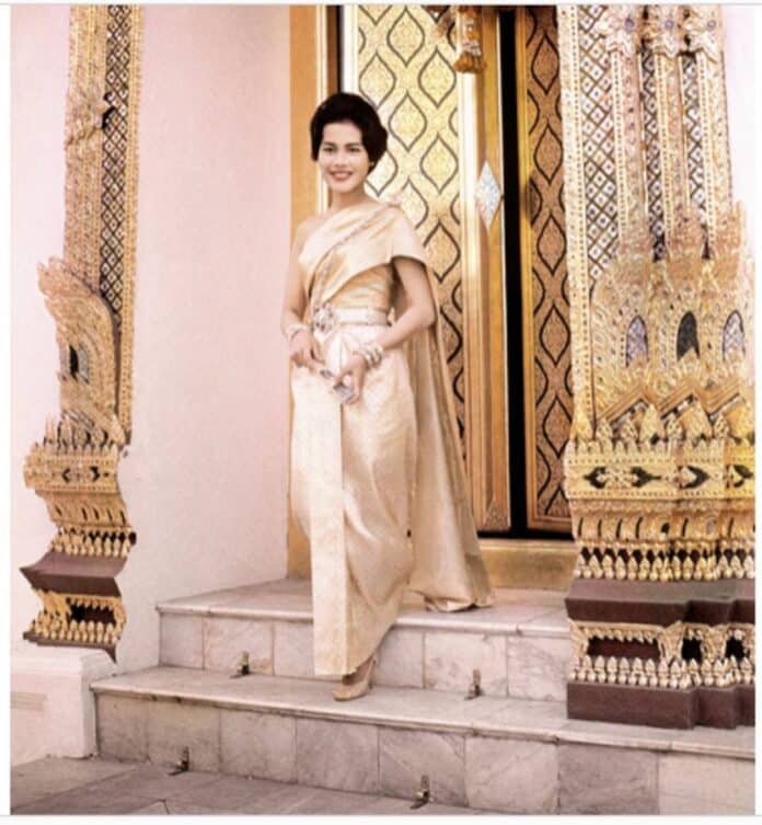 La reine Sirikit : l’image d’une nation L’exposition s’articule autour de la garde‑robe de Sa Majesté la reine Sirikit dont le style et la modernité ont profondément influencé la perception internationale de la Thaïlande à une période charnière de son histoire. Dans les années 1960, ses apparitions lors des visites d’État, notamment à l’étranger, ont attiré l’attention de la presse internationale, faisant d’elle une figure emblématique dont l’élégance dépasse le cadre diplomatique. Dans le contexte de l’après-Seconde Guerre mondiale, alors que la Thaïlande réaffirme sa place sur la scène mondiale sous le règne du roi Bhumibol Adulyadej (Rama IX), le vêtement devient un vecteur d’affirmation identitaire associant raffinement et continuité culturelle.