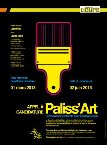 Pour la 9ème année consécutive, le Conseil général de l’Eure organise, dans le cadre de La Fête de la peinture, un concours destiné à promouvoir l’art contemporain, Paliss’Art.