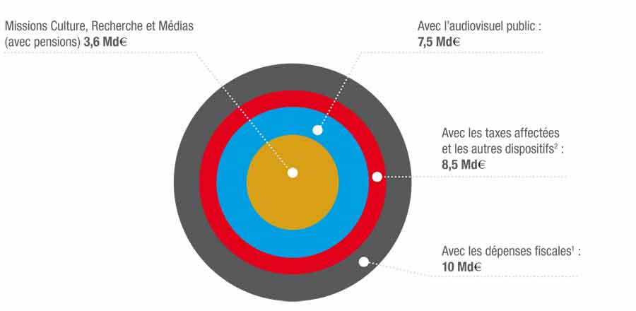 – 3,6 Md€ consacrés à la culture, à la recherche et aux médias, en hausse de 5,5 % par rapport à 2016;