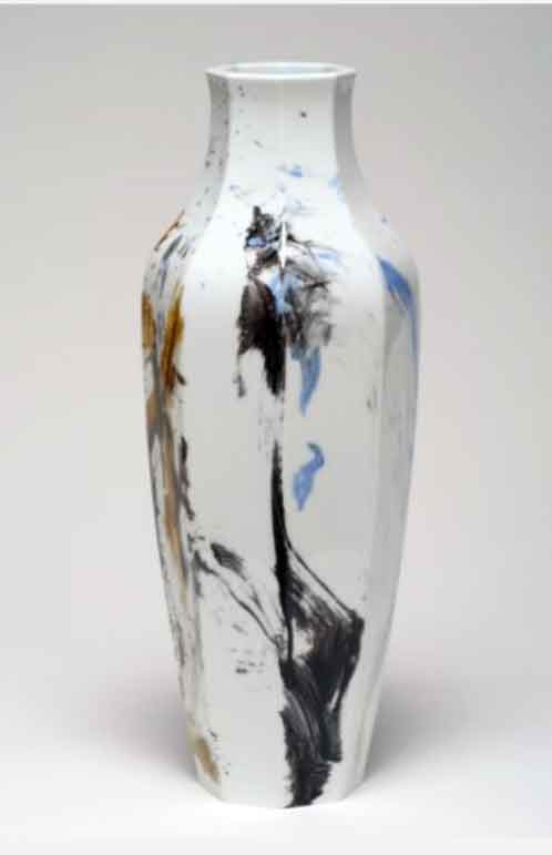 Le grand maître chinois privilégie la pose d’une couleur de grand feu, sur la pâte crue. Son geste est sûr et spontané, la technique est celle de l’encre posée sur le papier. L’artiste renoue ainsi avec la tradition chinoise et prolonge à sa manière le dialogue entre Orient et Occident.